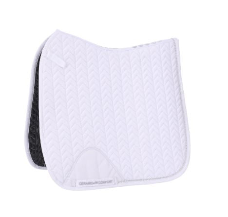 The Power Pad Ceramica Style saddle pad offers the perfect blend of functionality and style for dedicated riders. This cotton saddle pad features a functional, quick-drying “ceramic” backing that enhances comfort and moisture management. The PU badge in the saddle girth area protects the outer fabric, ensuring durability and longevity. With its modern herringbone design, this saddle pad stands out in any riding arena. The logo embroidery along the back line and girth straps adds a sophisticated touch, while the durable binding ensures long-lasting quality.