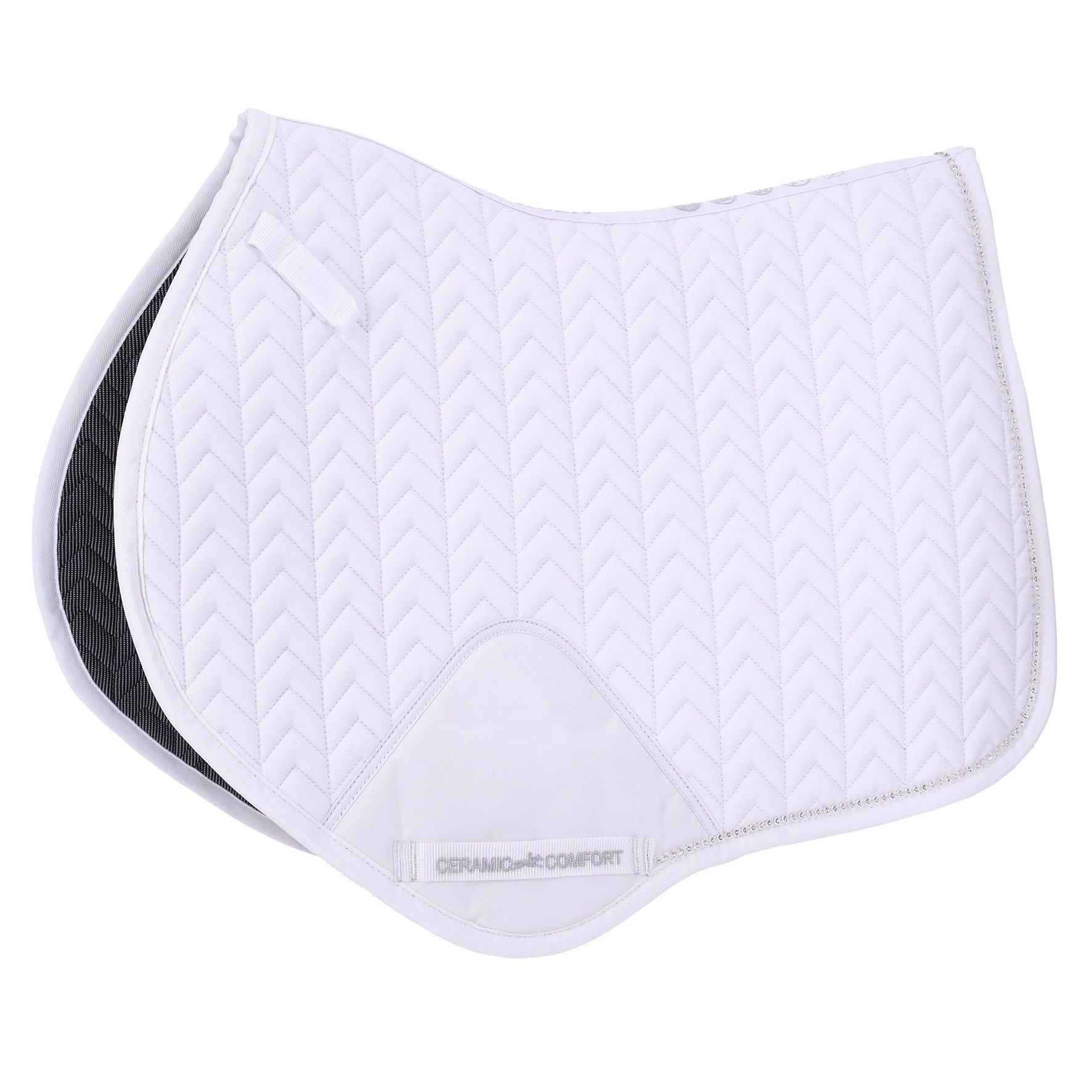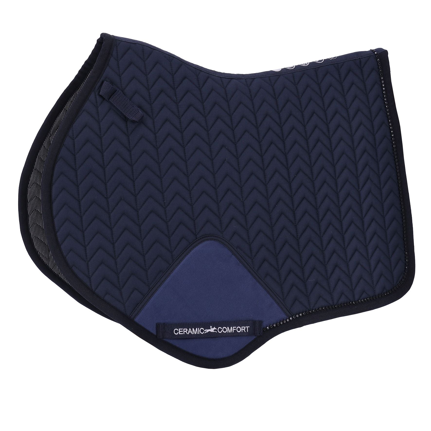 The Power Pad Ceramica Style saddle pad offers the perfect blend of functionality and style for dedicated riders. This cotton saddle pad features a functional, quick-drying “ceramic” backing that enhances comfort and moisture management. The PU badge in the saddle girth area protects the outer fabric, ensuring durability and longevity. With its modern herringbone design, this saddle pad stands out in any riding arena. The logo embroidery along the back line and girth straps adds a sophisticated touch, while the durable binding ensures long-lasting quality.
