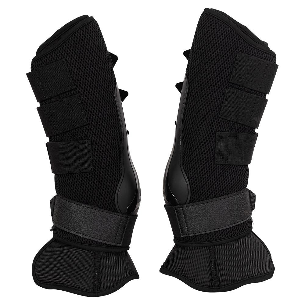 On the outside there is a hard shell of PU to protect the tendons. The protectors are closable with sturdy Velcro fasteners with double-layer elastic, one of which is extra-long. The inner lining has softly covered seams to make it feel extra comfortable on the horse's skin and the lining can be removed with Velcro so the lining can be washed separately.