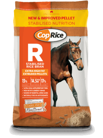 Rich in protein and essential amino acids, it is ideal for building topline, muscle development and conditioning in horses. High in rice bran oil – a great source of antioxidants and essential fatty acids, it assists muscle recovery and advances skin and coat health.
