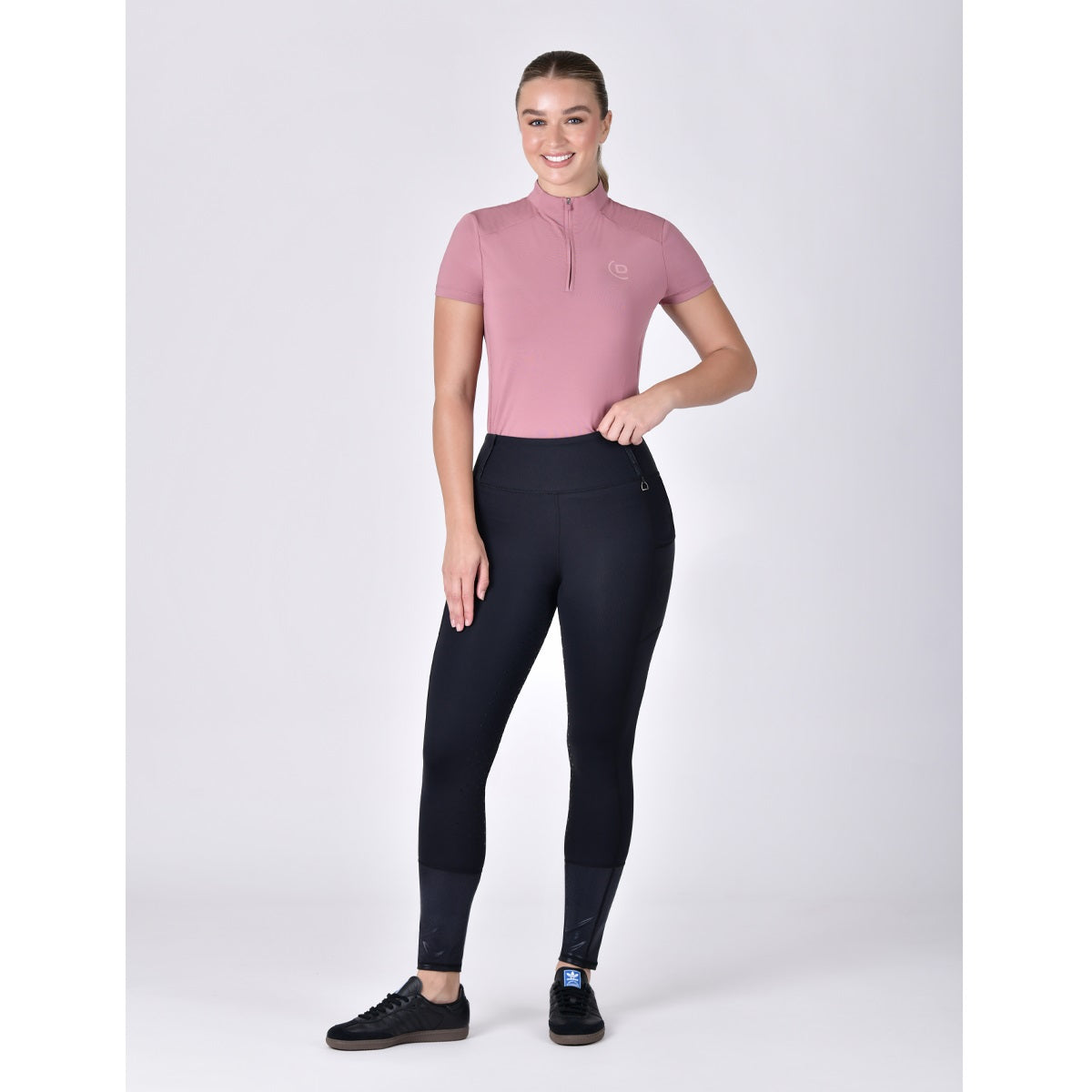 Stylish look: Cute stirrup metal trim and belt loops give these riding tights a stylish, functional edge