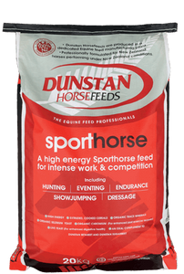 Dunstan Sporthorse is a premium, high-energy complete feed formulated using a blend of highly digestible extruded cereals, Oats, Sugarbeet, and Vegetable Oil.