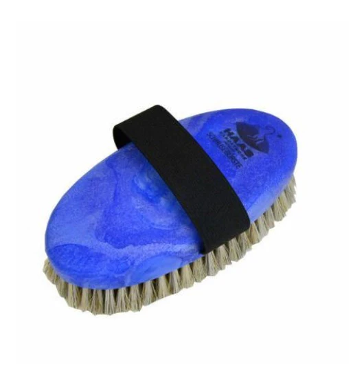 Haas Schmuseburste Cuddle Body Brush is an exceptionally soft horsehair bristle brush designed specifically for sensitive areas of the horse. The small size fits perfectly into kid sized hands, while the elastic handle expands to fit just about any size hand. The synthetic back makes this brush durable easy to clean.
