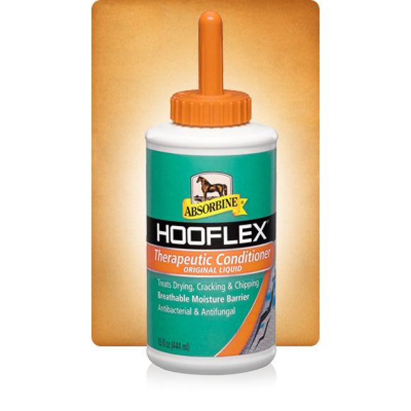Hooflex® Liquid Conditioner is an easy-to-apply liquid form of Hooflex® Original Ointment. Made with the same unique formula of nine active ingredients, it uses a breathable barrier to help maintain the proper moisture balance necessary to keep hooves pliable. The brush-in-cap applicator makes using it fast, convenient and hands-free.