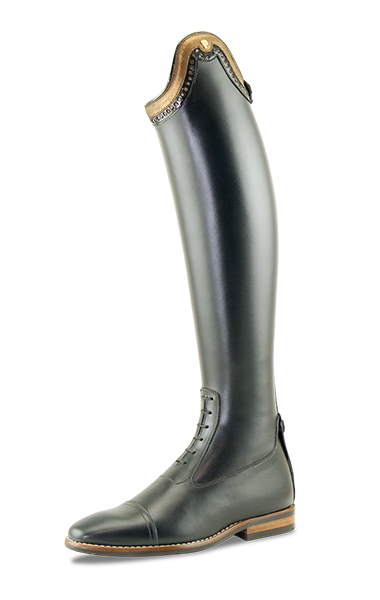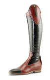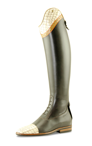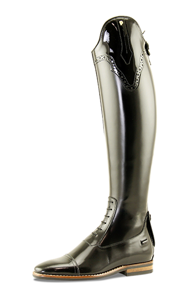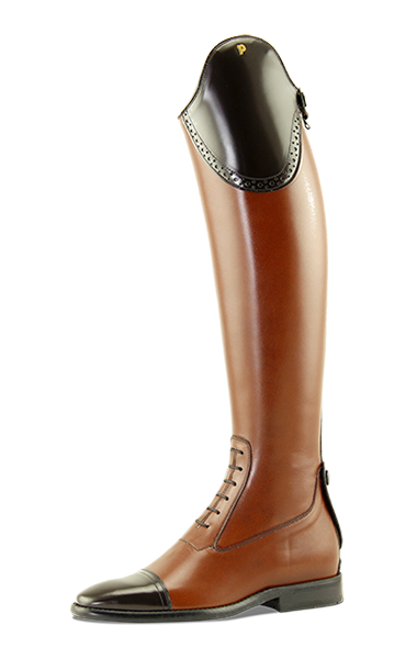 The Petrie Coventry is a popular versatile boot with a slim cut design. Loved by both showjumpers ánd dressage riders. Therefore, it’s also a perfect allrounder for eventing. The boot has a zipper on the back and decorative lace at the front. The Coventry is available in standard colours like black, brown, cognac and blue, but also offers multiple design options in our Customize Your Boots application. The model is also available including an elastic insert along the zipper for a closer fit.
