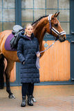 Our fashionable women's quilted coat SPKyra Style combines style and function for every occasion. It is padded and offers warmth and comfort in cooler weather. Two long zipped pockets at the front and a practical inner pocket with a zipper provide plenty of space for your essentials. The 2-way zipper with sporty logo zipper in the center front allows for flexible adjustment. An adjustable hood with a wide trim protects against wind and rain, while a long concealed zipper at the center back provides a modern look. The cuffs are finished with an additional jersey cuff for warmth and comfort. A stylish logo embroidery on the left front and a logo rubber badge on the left sleeve give the coat an individual touch and emphasize your attention to detail.