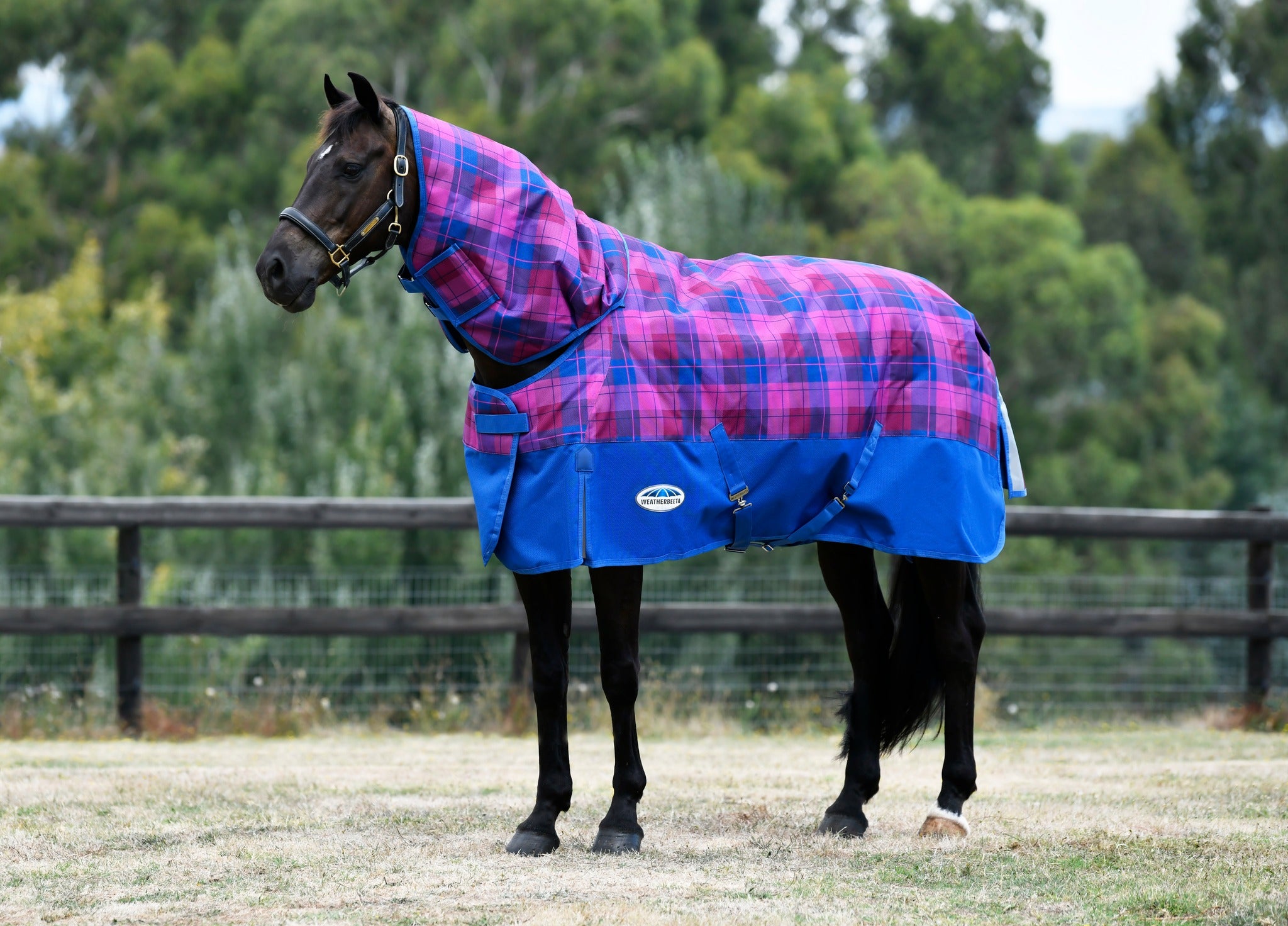 • Full embrace wrap for a huggable fit with concealed Ezi-buckle closure for optimum safety in the field.  Plus WeatherBeeta temperature gauge badge to easily identify the weight of the rug