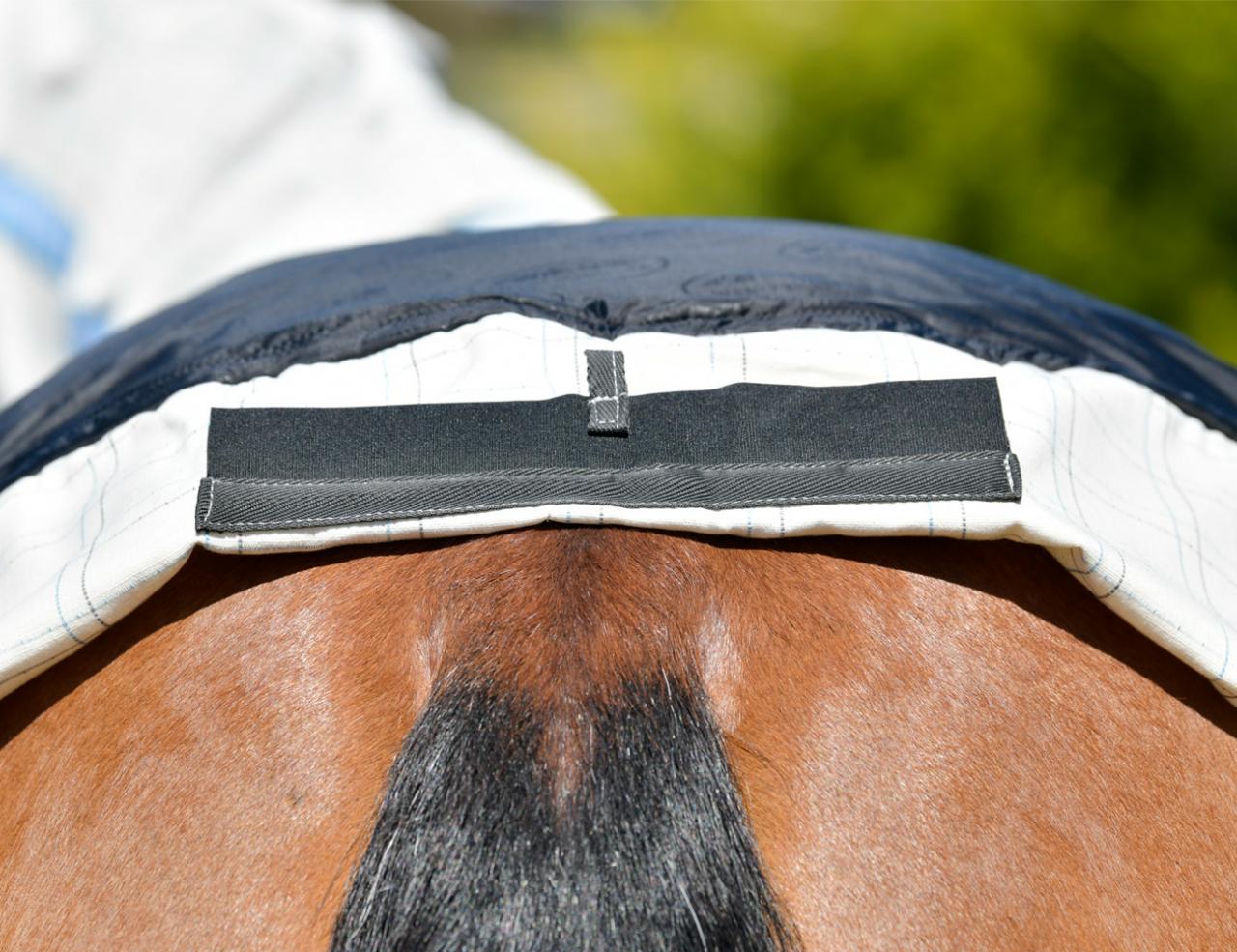 - Full wrap tail flap that has a two piece design that wraps around the horses' quarters for maximum protection with touch tape tail bag attachment