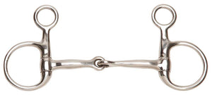 Stainless Steel. The baucher is most often seen in use for showjump and dressage phases in eventing. The reins attach to the eggbutt-like ring at the mouthpiece, while the bridle cheeks attach to the smaller ring. This makes the bit sit flat against the horse's face and is quite fixed in the mouth. Pressure is concentrated on the bars, along with some slight poll pressure.